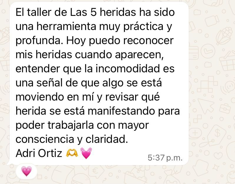 Un taller que te ayuda a entender tus heridas de infancia y cómo se activan en tu vida adulta para sanarlas.